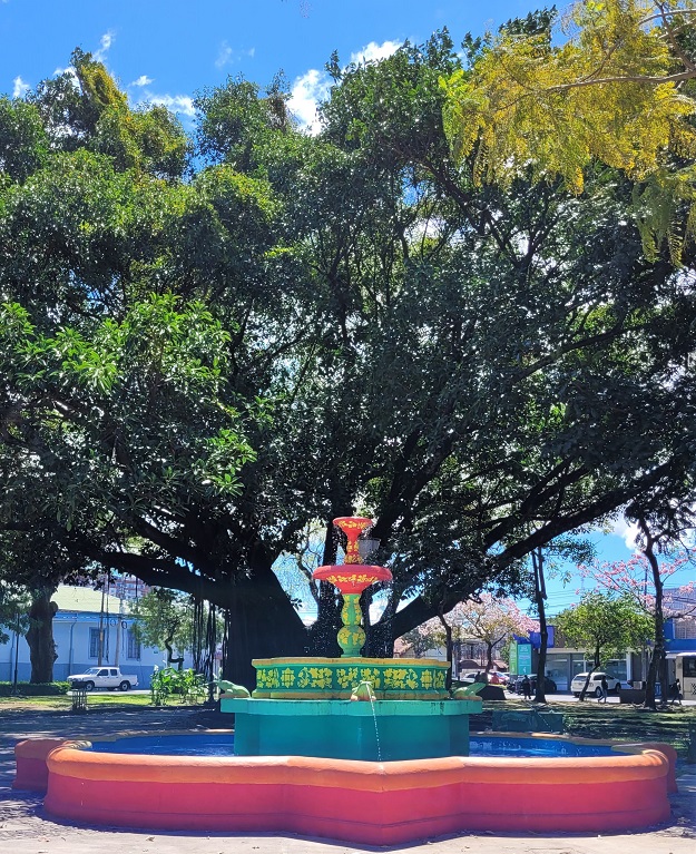 Vähän ytimen ulkopuolella Sábanan puistossa costaricalaisen taiteen museo yllättää, se onkin ilmainen. Puistossa, autoväylien keskellä, juostaan lenkkiä, uidaan, kävellään. Kaipaan kahville ja siksi siis keskustaan, vaikka olin vannonut, että sen jätän väliin. Café Miel oli silti listoillani ja sinne haluan mennä. Koska? Kakut pursuavan herkullisia, tiskissä ylenpalttista makeutta ja houkutusta.