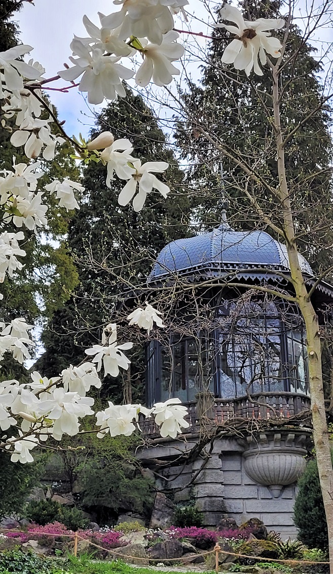 Villa Patumbahin puisto Zürichissä vetää kukkabongaajia puoleensa juuri näihin aikoihin. Kamerat räpsyy jo sen edustalla, missä kirsikka kukkii diivamaisesti keskellä kaupunkimaisemaa. Valurautaportista puikahtaa hymyileviä ihmisiä, keväthuuman luomamia.