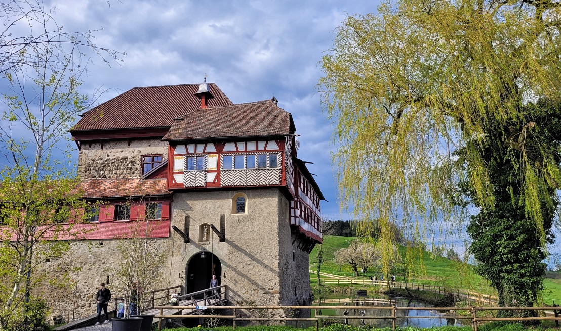 Ensimmäisessä linnassa, Wasserschloss Hagenwilissä, vietetään häitä. Pieni linna istuu kylään nätisti, vierestä nousee viinikukkula ja toisella puolen tiet vievät mäkiä ylös peltojen reunaan.