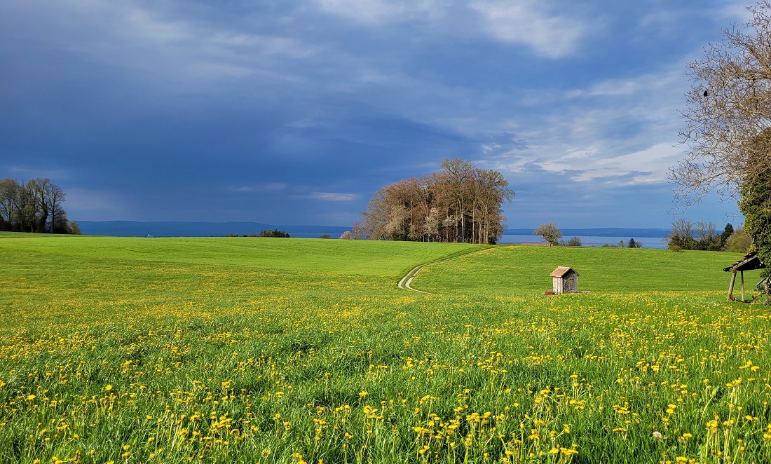 En resumen: Una vuelta entre los mazanos en el campo en el norte de Suiza era pura belleza. Los pajaros cantando de la lluvia, flores, el inmenso lago de Constanza y tranquilidad.