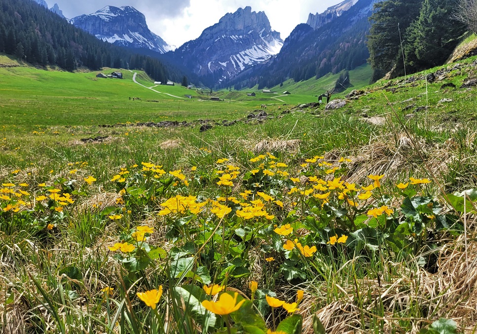 Kurzgesagt: Die erste Wanderung des Frühlings in den Appenzeller Alpen; singende Kuckucke, weisse Krokusse auf der Wiese, der unglaublich grüner See und der andere, wie ein Aquarell.