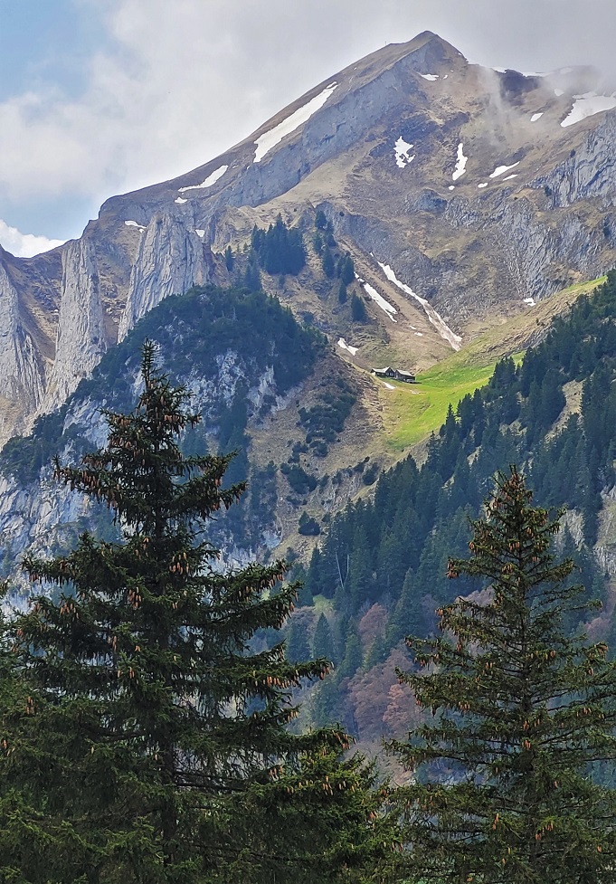 Fählenseellä Gasthaus oli vielä talvilevolla. Joku yritti epätoivoisesti sytyttää niemen nokkaan märkää kuusen oksaan tulta nuotioksi. Järvi oli kuin akvarelli, siihen heijastuivat vuorenseinämien valkoiset lumiraidat ja kiven harmaa. Jäät olivat sulaneet selvästikin aikaa sitten pois. Istahdin kivelle ja hengitin. Tuskin ajattelin mitään. Olin vain ja maadoitin oloani.