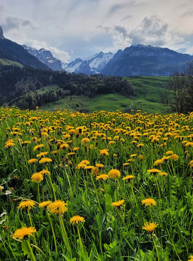 En resumen: El primer paseito de primavera en los Alpes de Appenzell, rodeados por los cucús cantando, admirando crocuses, el paisaje alrededor del lago verde y donde el otro, como una acuarela.