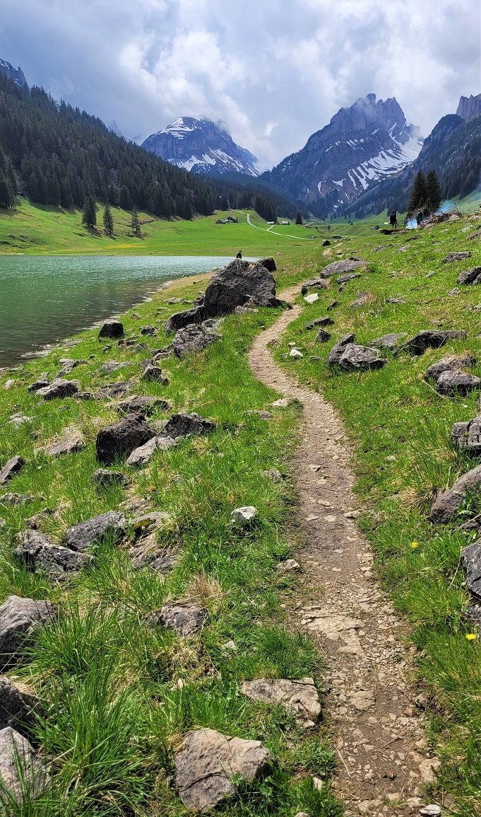 Ensimmäiselle järvelle, Sämtiserseelle patikoi kauniilla kevätkelillä ulkoilijoita lähes virtana. Nyt vain me ja käet, jotka kukkuivat yhtäällä ja toisaalla, koko matkan ajan. Yksi kirkkaasti ja korkealta, toinen valitsi eri sävellajin ja lauloi matalammalta. Aldo äänitti pätkän, laulaen En el lejano bosque canta el cucú (kaukaisessa metsässä laulaa käki), ja soolon veti komeasti Appenzellin käki.