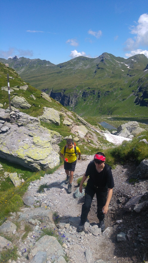 Surettajärville on myös kaksi eri reittiä ja kannattaa valita se pidempi. (Suorempi siksakkaa seinämää ja on kapeampi) Tämäkään ei ole missään mielessä kevyt nousta, aikaa tarvitaan, samoin juomista ja evästä, mutta ylhäällä odottavat karut vuoristomaisemat alppijärven rannalla.
