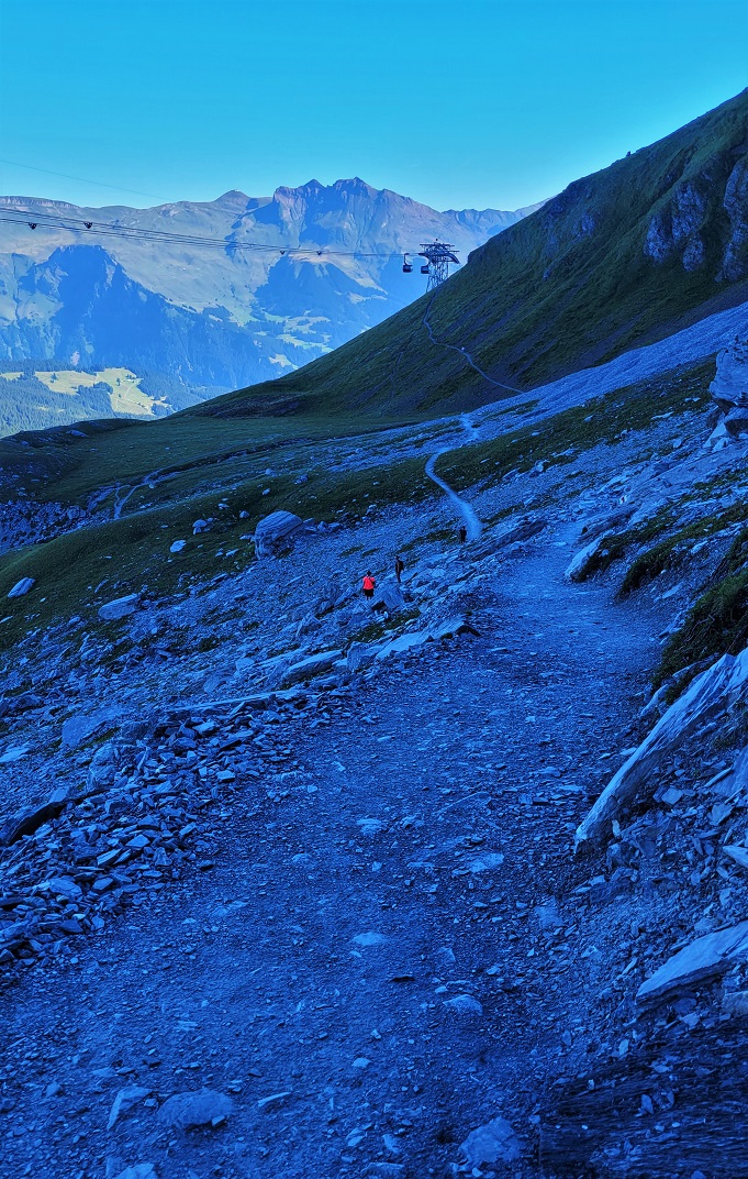 Leaving from the station of Eigergletscher, the light is blue.