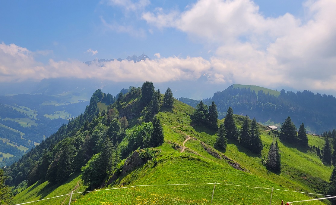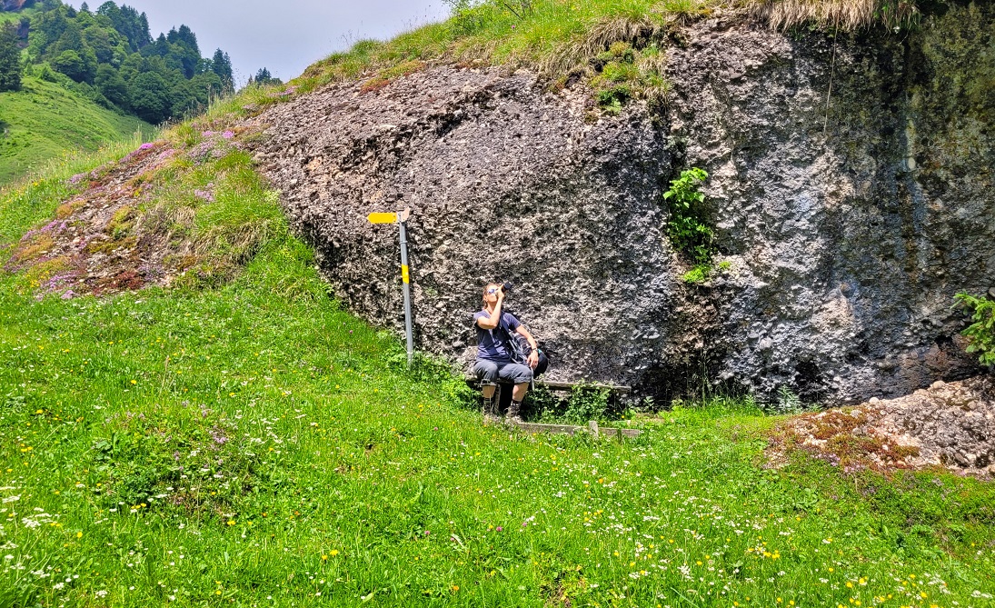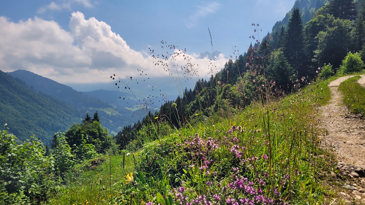 Oltiin ajamassa Italian puolelta Zürichiin ja koska matka on pitkähkö, joten pidettiin patikkapaussi Ticinossa Luganon lähellä. Huippuhaaste on edennyt tahmeahkosti katastrofaalisten säiden ja tautien takia, mutta viides reitti 26:sta oli juuri sopiva tähän tilanteeseen. Monte Leman reitti oli melkein kokonaan alamäkeä, lähes kilometrin verran.