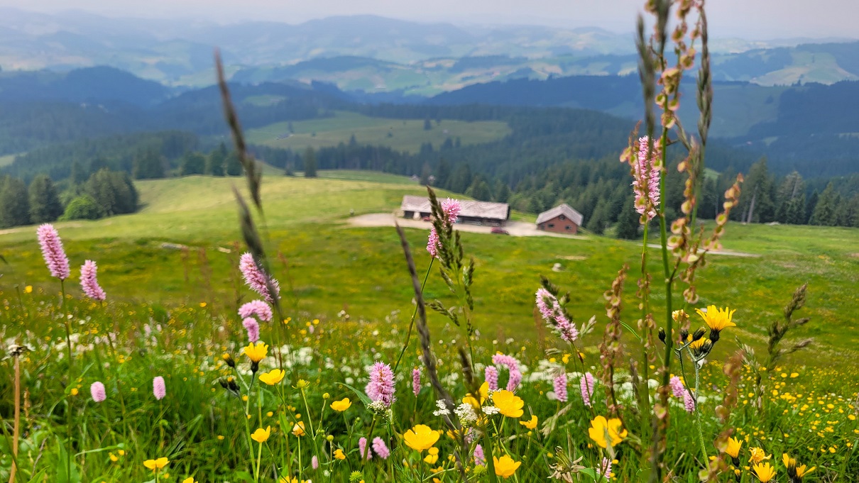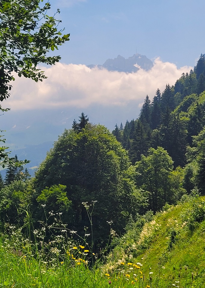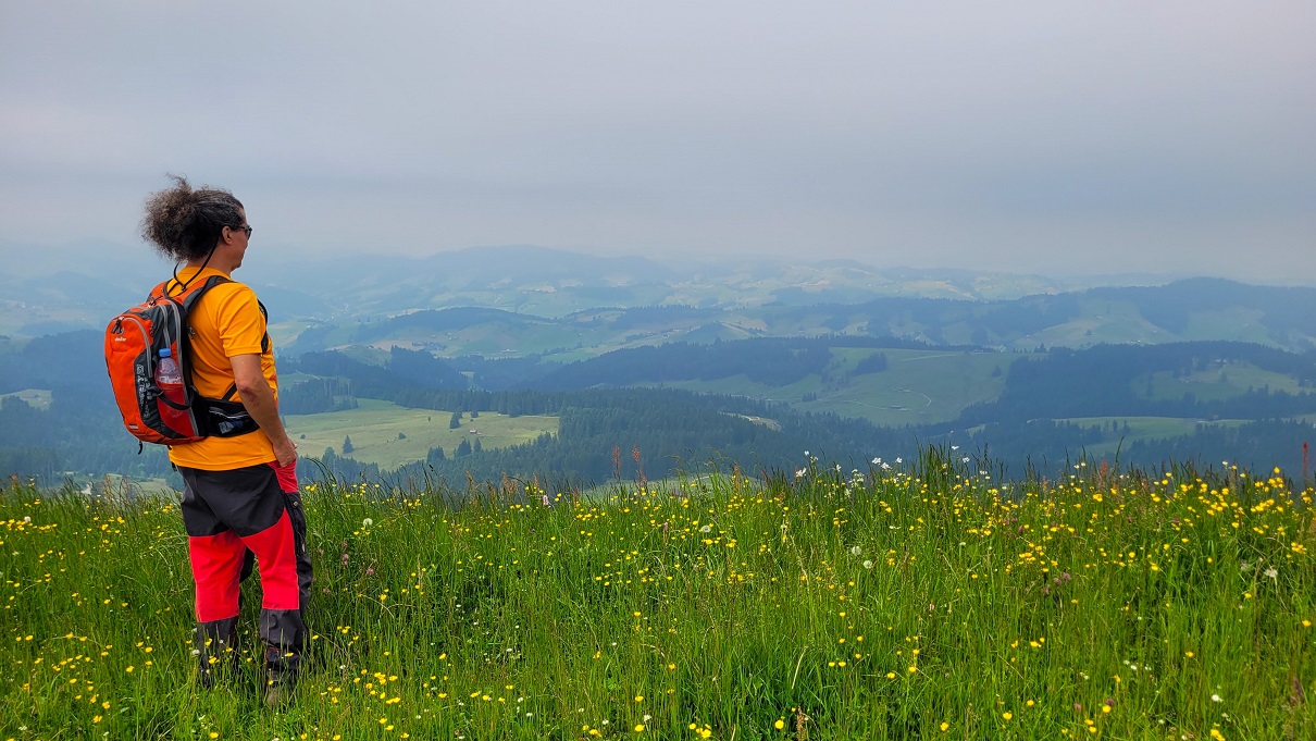 Monte Lemalta on järvimaisemia ja kukkuloita joka suuntaan, Lago Maggiore yhdellä puolen, Lago di Lugano toisella ja muitakin varmasti, mutta lonkeroisista vesistöistä oli tällä säällä hankala saada selvää mikä kuuluu mihinkin.
