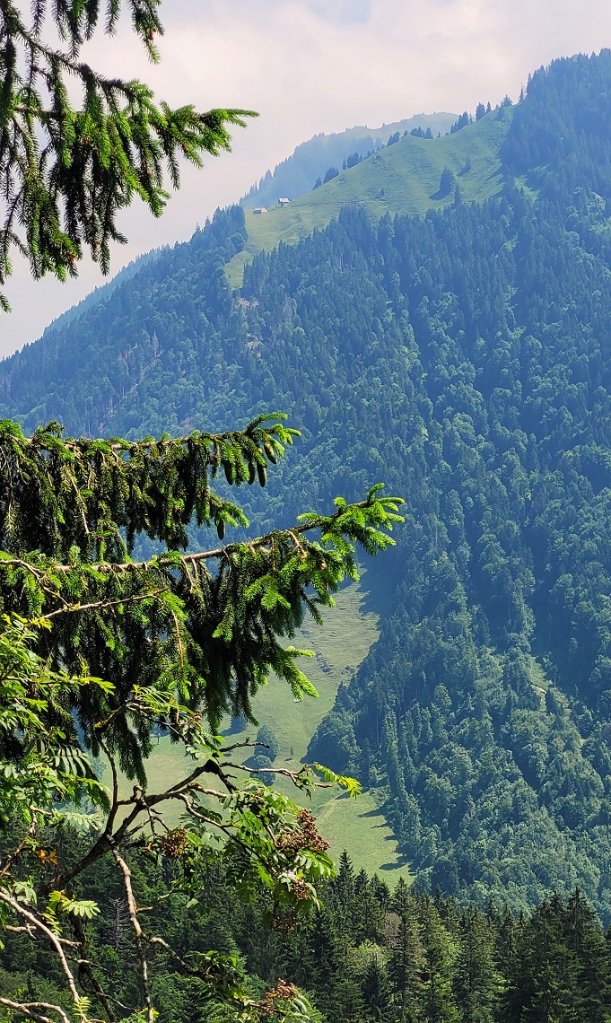 Monte Lemalla oli kuitenkin rauha maassa. Huipun muutamien ihmisten jälkeen vastaantulijoita oli yksi ihminen koiran kera. Ilma oli sumea, mikä pehmensi maisemia akvarellimaiseksi sineksi. Matkalla ei ollut mitään ihmeellistä, silti ihanan raikasta, runsaskasvuista ja vehreää. Keskivälillä kuljettiin saniais- ja koivuvyöhykkeen läpi. Ruipeloiden valkoisten ja vähän känkkäröiden koivujen keskellä oli epätodellinen tunnelma; onko tämä tropiikkia vai pohjoista?