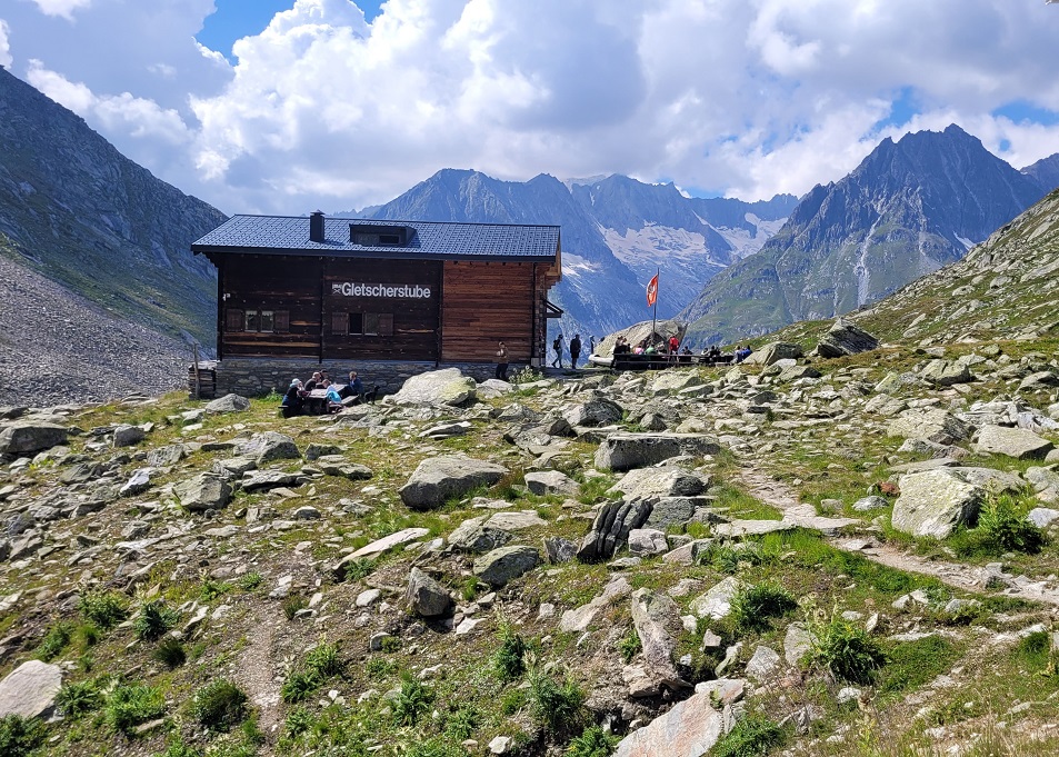 Jäätikkömökki, Gletscherhütte, oli täynnä punaposkista porukkaa, aurinko oli yhä kirkas ja polttava. Lepuutin kinttua alppimakaroonipannullisen ajan ja mietin tallatako takaisin paljain jaloin. Venkslasin nauhojen kanssa, löysytin ja kiristin. Ja seuraavana päivänä olin jälleen polulla.