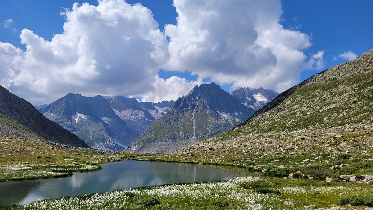 Olen ollut viikon työreissussa ja nyt kaiken kasaantuneen keskellä katselen kuvia ja yritän muistella, mitä kaikkea Aletsch-jäätikön lähellä näinkään. Suljen silmäni ja näen valtavat korkeuserot, huiput ja laaksot.