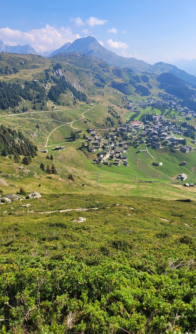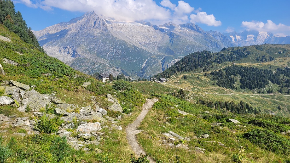 Polku siksakkasi ja oltiin yli 2000 metrissä; silloin tällöin kirpaisu kintussa pisti myös hengähtämään. Pistin kesän koronan piikkiin sen, että sveitsiläinen ikääntynyt pariskunta hilpaisi ohi kevyesti ja huohottamatta. Varmaankin paikallisia, asuvat vuorilla, yritin selittää. Kevyesti menivät siihenkin nähden, että omille pitkille koivillenikin monet askelmat olivat niin korkeita, että piti ottaa vähän maastosta käsillä tukea.