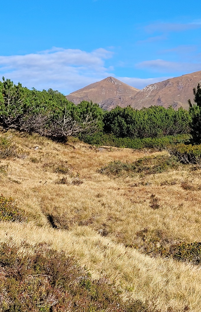 Polku nousee Murgseefurggeliin 1985 metriin, missä tuulee aina raivoisasti. Yritin vetää päälleni purjeena lepattavan takin ja huppu riistäytyi puhurin mukaan, kun yritin koskoa vetoketjua kiinni. Lisäenergiaa eli pähkinöitä ja kuivahedelmiä, mahdollisimman pieniä ja tuulessa kädessä kestäviä, syötiin kiven juureen sykkyrään kyyristyneenä.