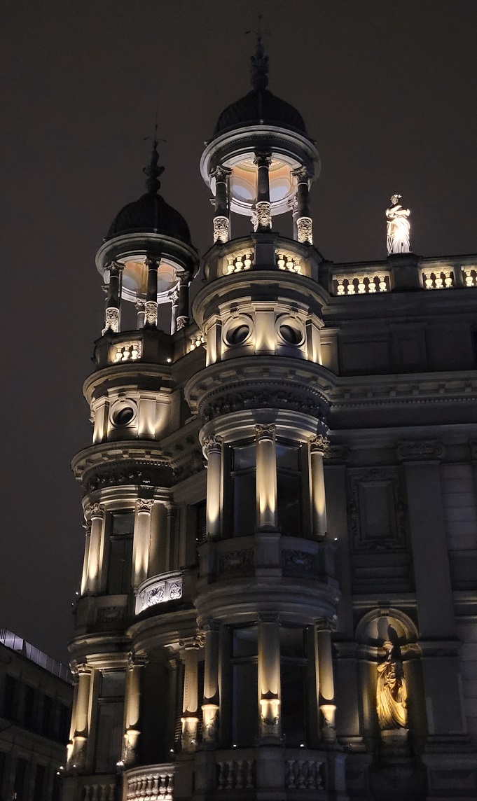 Tässä mielenalassa, tyytyväisenä asioiden tilasta ja siitä, että olimme lupaavan lähellä alkavaa tapahtumaa, vajosin teatterin tummanpunaiselle istuimelle ja niskat nyrjällään ihastelin kattokruunua. Tätä tunnelmaa piti tallettaa muistiin, sillä suunnitelmien mukaan sali modernisoidaan, mikä ei koskaan lupaa menneen ajan viehkeää estetiikkaa, vaan jotain koleaa ja toimivaa.