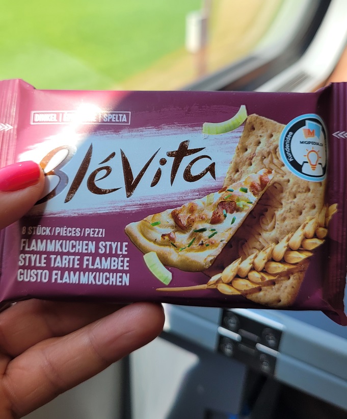 Koska Appenzelliin ei taaskaan päästy ukkosen takia, ajeltiin junalla sinne minne myräkkä ei ylettänyt eli St. Galleniin. Itään siis kuitenkin. Junamatkaa riitti sen verran, että avasin Blévitan Flammkuchen piparipaketin ja tuomio oli välitön: maistuu nahistuneelle sipulille. Ensi kerralla palaan jälleen timjami-merisuolakomboon.
