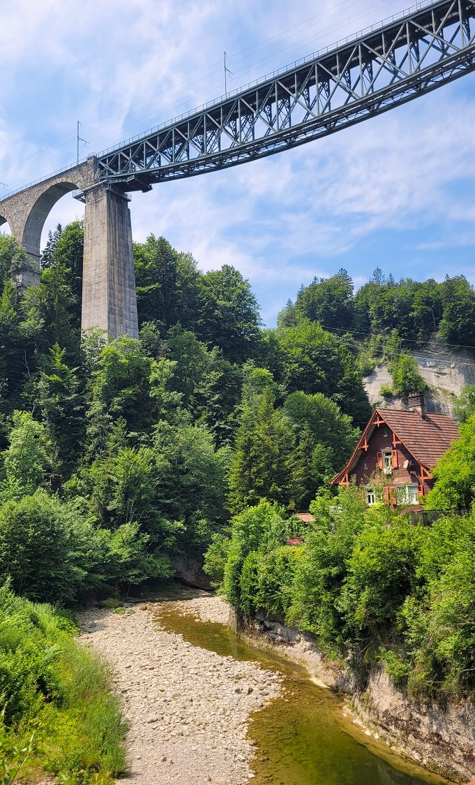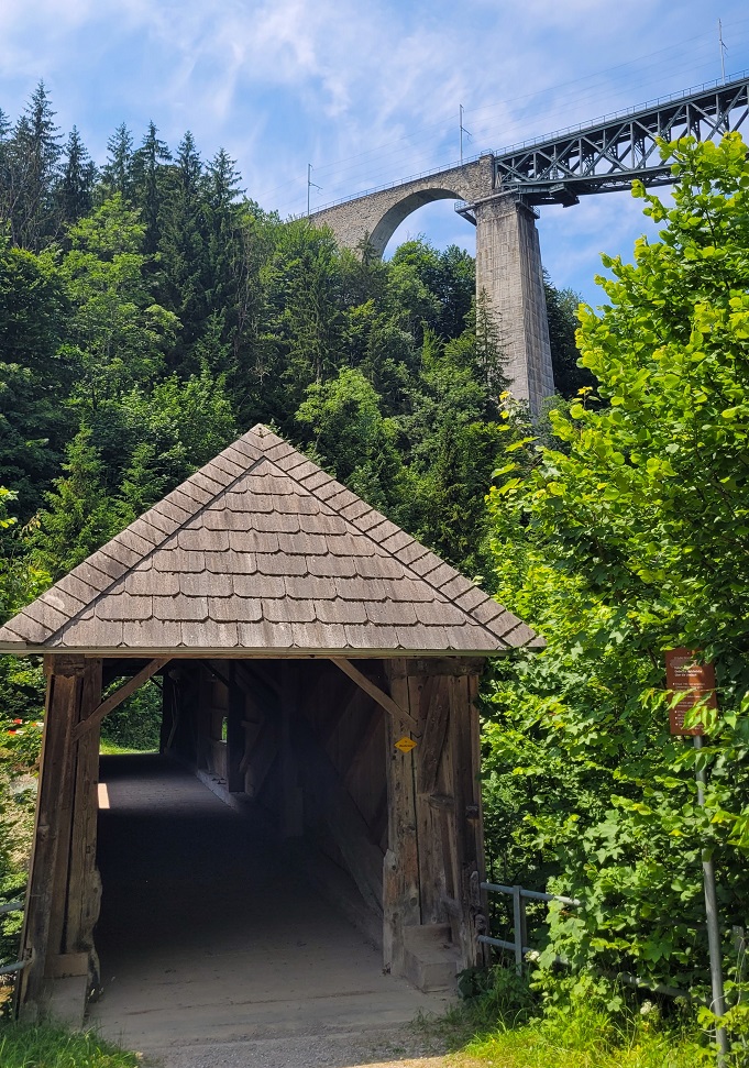 Reitti oli ihan omaa luokkaansa ja neljäs 26 Summits Challengen poluista. Mentiin St. Gallenin maaseutua, välillä piipahdettiin kai Aargaussakin, 18 sillan ali, yli ja vierestä. Ensimmäinen, yksi Euroopan korkeimmista, nähtiin ensin ylhäältä käsin, sitten alhaalta. Vuosisatoja vanhat katetut sillat, osa luostareiden rakentamia, ovat aina viehkeitä. Mutta rautatiesillan uhkeat pylväät ja talot sen alla luovat uskomattoman kontrastin.