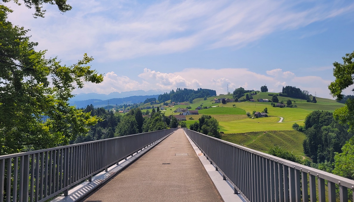 Kurzgesagt: Den St. Galler Brückenweg kann man auch in der Hitze wandern. Es gibt Wälder und ein Fluss zum Abkühlung und zum Schluss kann man immer sich eine Glace gönnen. Oder zwei.