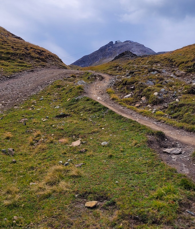 Matkalla on vain yksi kohta, jossa nousu on sekä jyrkkä että vaatii pientä tarkkuutta. Sen olisin voinut kiertää alamäkipyöräilyyn tarkoitettua tietä pitkin, mutta olin jo sen verran ylhäällä, ettei kannattanut kääntyä takaisin. Viime kerralla kaikki meni sen suuremmitta vaikeuksitta.
