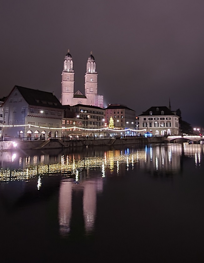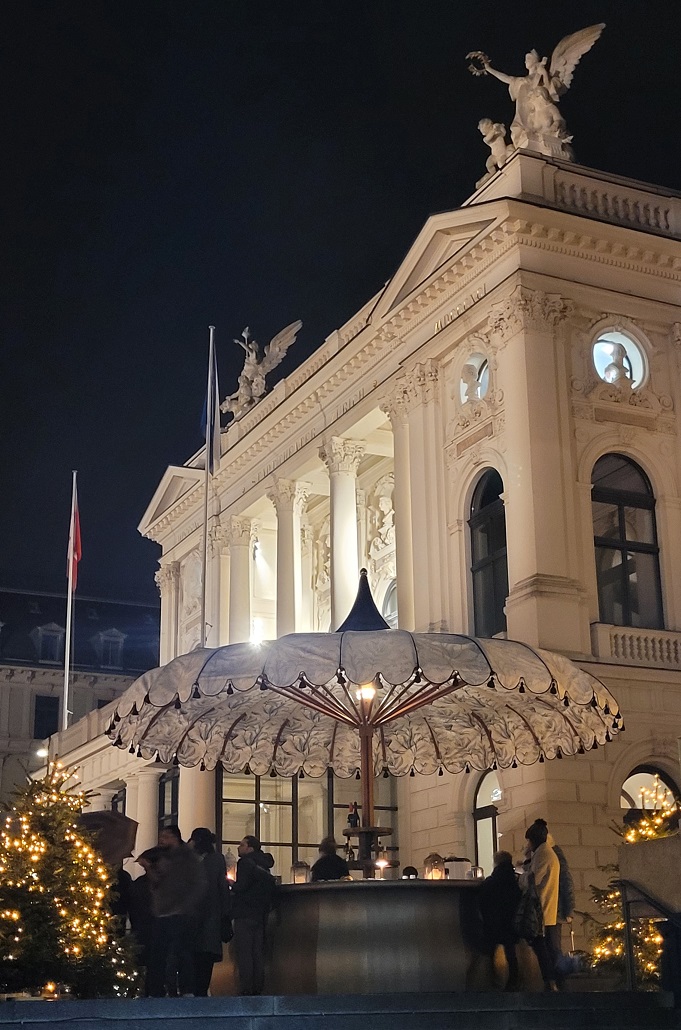 Tämän sesongin surkein idea oli tunkeutua Zürichin Bellevuen joulukylään matkatavaroin. Kamppasin laukullani erään naisen, jumituin tungoksen keskelle ja kastuin sateessa. Silti hetken pysähdys, rauhoittuminen kaaoksen keskellä ja oikeastaan se sateen ropina huppuunkin oli tunnelmallista. Joulu on tätäkin. Säntäilyn välissä pysähtymistä.
