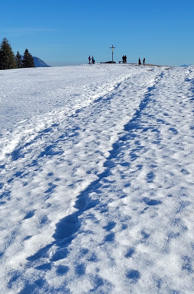 Vetäisen talvipatikkakengät yleensä ensimmäisen kerran jalkaan vuoden lopussa ja kohteena nk. Golden Jesus eli Vorder Höhi. Aurinkoa, kimmeltävää lunta, ihanuutta juuri sen verran, että pääsee talven makuun.