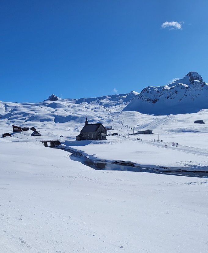 Lunta oli enemmän kuin odotin. Itäisen Sveitsin vihreät rinteet olivat jo keväisiä, täällä keskemmällä maata oli yhä talvi tai ainakin kevättalvi.