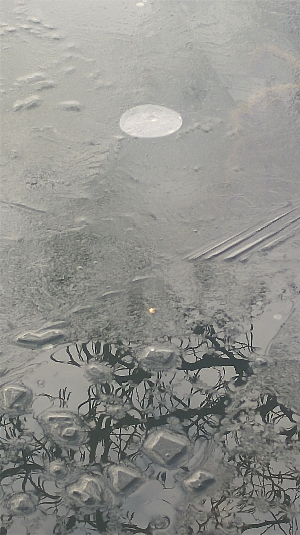 Jokivarressa putoukseen oli kertynyt jo hieman jäätä. Yöt on pakkasen puolella, päivisin pari lämmintä. Kaksi pientä järveä matkalla olivat osittain jäätyneet ja päällä kaunista riitettä. Sorsalinnut selvästikin etsivät jo paria.
