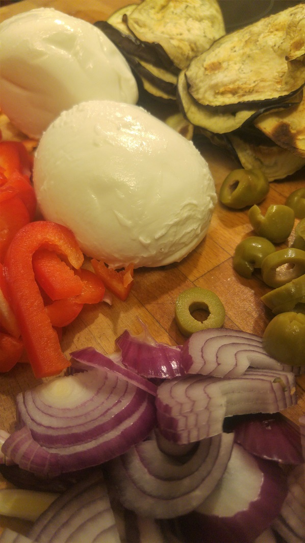 Illaksi tein vielä pizzataikinan, latasin päälle grillattua munakoisoa, sipulia, paprikaa ja mozzarellaa sekä vähän parmesania. Oli kiva tehdä ruokaa kiireettömästi. Pizzaa seurasi vielä myöhäinen iltakävely autiolla kylällä. Edes autoja ei kulkenut. Kulman takaa tuli mies, eikä koiran hihna erottunut pimeässä, koirakin oli piilossa. Olin nöksähtää nenälleni ja päästimme molemmat hermostuneen entschuldigungin ja naurahduksen. Kumpikaan meistä ei odottanut kohtaamista kenenkään kanssa.