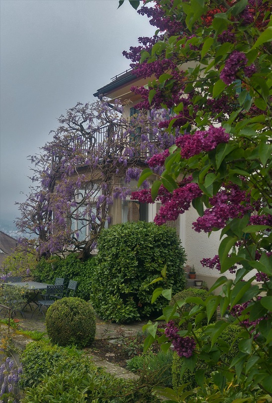 Tuo kirsikan vaaleanpunainen ja minunvihreä seinä ovat tykätty kombinaatio. You see quite often this combination of mint green and pink.Montreux´n pikkuruinen vanhakaupunki. The small oldtown in Montreux.MontreuxMontreux´n vanhoja kujia. Old alleys in Montreux.Ja sitä mielenrauhaa. And peace of mind.Chillonin linna. The castle of Chillon.Veveyn haarukkataidetta. Cutlery art in Vevey.Muutama kukka koristaa Montreux:tä. A couple of flowers in Montreux.Vielä on lunta huipuilla. Still some snow on the peaks.Rochers-de-NayeVanha omenapuu jaksaa kukkia. he oldappletree has still energy to bloom.Aina haistelemassa kukkia. Always sniffing the flowers.Ruokalistalla pastaa ja metsästä kerätystä karhunlaukasta pestoa. Ynnä muuta. Birthday dinner with ramsonspesto. Etc. Hämyisää ja tunnelmallista, kuten kuvaan kuuluu. Twilight gig with a great trumpet solo.