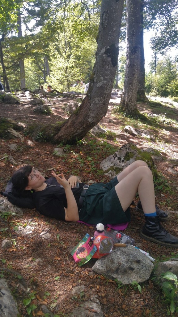 Sumu velloi autotiellä matkalla vuoren juurelle. Kuvittelin seikkailua harmaan kostean villan keskellä kohti tuntematonta. “No mitäs!” pääsi patikan alkupisteessä. Yhtä aurinkoa. Sumu oli jo jäänyt alemmas. Täällä oli enää hutun rippeet.
