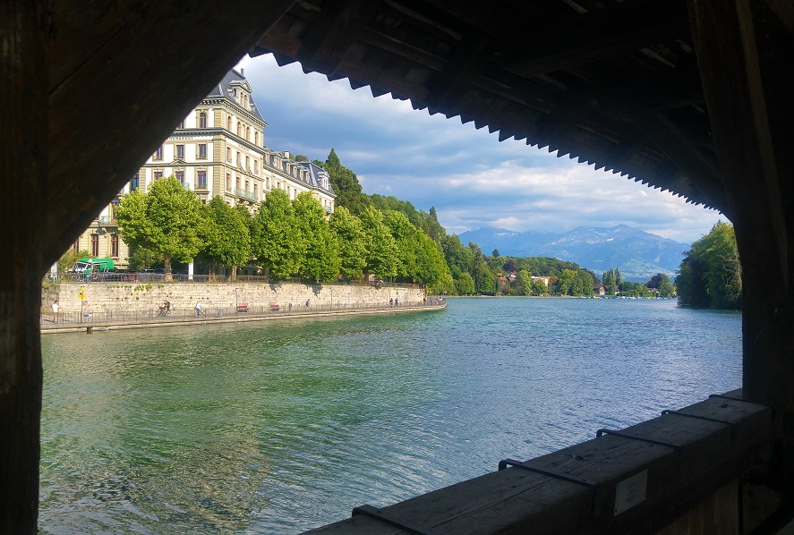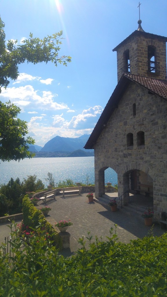 Toisella puolen järveä olemme tasaisella tai ainakin edelliseen verrattuna. Todellisuudessa ajamme jatkuvasti ylöspäin, mutta kadulla. Ihastelen pyörän sutjakkaa kulkua. Liikennettä on paljon. Rakennustyömaat ja liikennevalot rytmittävät ohiajajia. Haluan pysähtyä rantakahvilaan, mutta siinä kohtaa on mahdotonta pysähtyä tai ylittää tietä. Kypäräkamera olisi kätevä, ajamme kalliolipan alla, läpi tunnelien, enkä keksi enää superlatiiveja järven värille tai sen loisteelle.