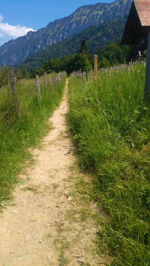 Reitti alkaa Sigriswilistä, mutta meistä Spiezmoos on loogisempi lähtöpiste. Edessä on heti se pisin nousu kohti Alppia, Maielisalppia. Tuoreilla kintuilla jaksaa.