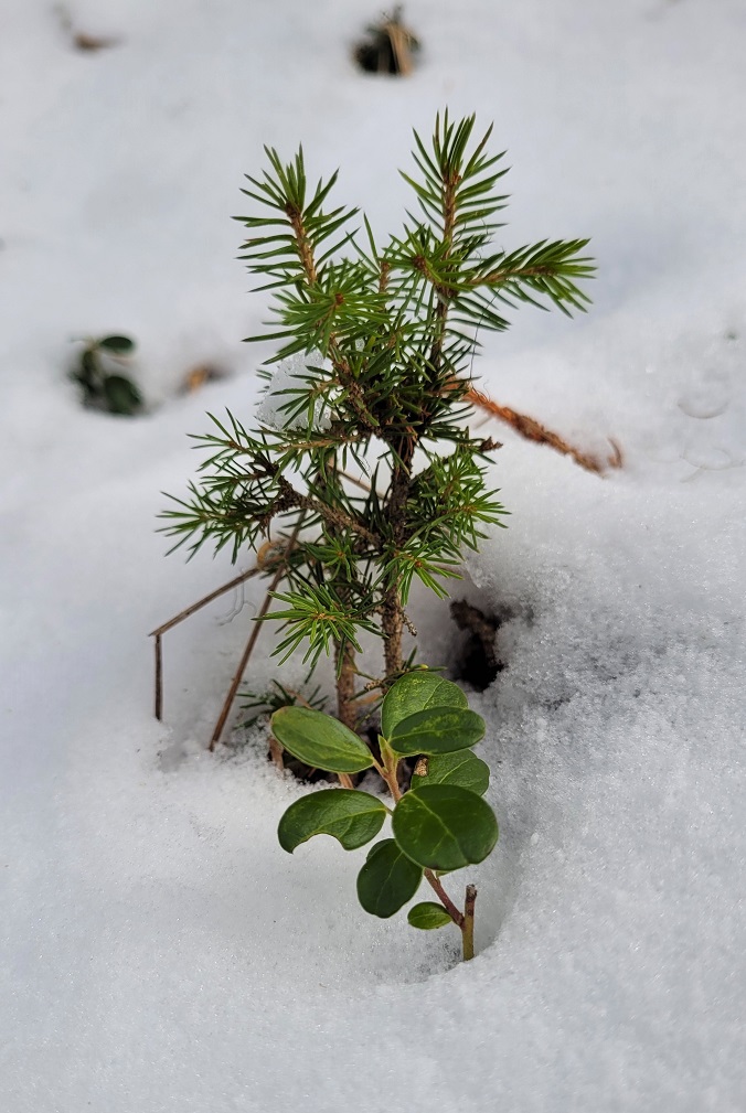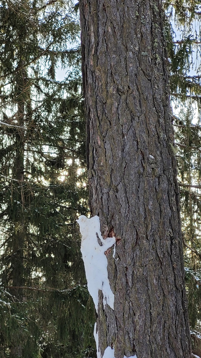 Luulin ensin, että vain minä näin lumisen karhun kiipeämässä puunrunkoa ylös, kohti latvaa. Mutta ei, luonnon veistos oli aivan selkeä. Vai oliko se jonkun taideteos?
