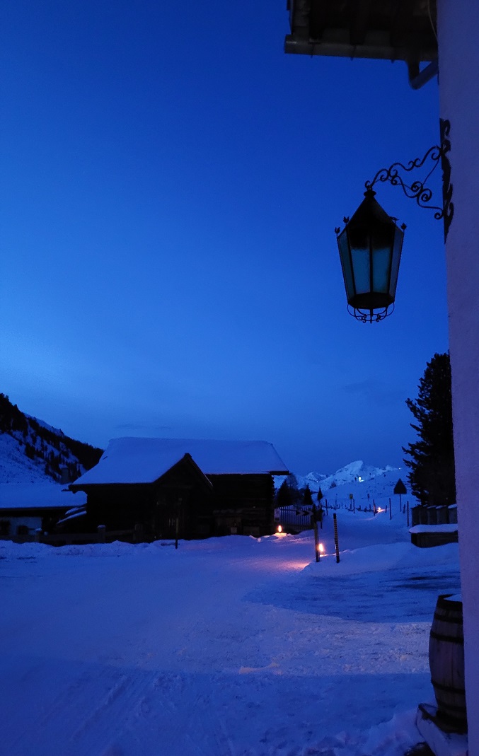 Lämpimästä tuvasta tulimme narskuvaan pakkaseen. Laakson yksinäisyydessä pilkotti vain yksi valo, seuraava ravintola. Voin kuvitella susien hiippailevan pimeässä tähtitaivaan alla. Me noustiin autoon ja ajeltiin takaisin Zürichin ikisyksyyn.