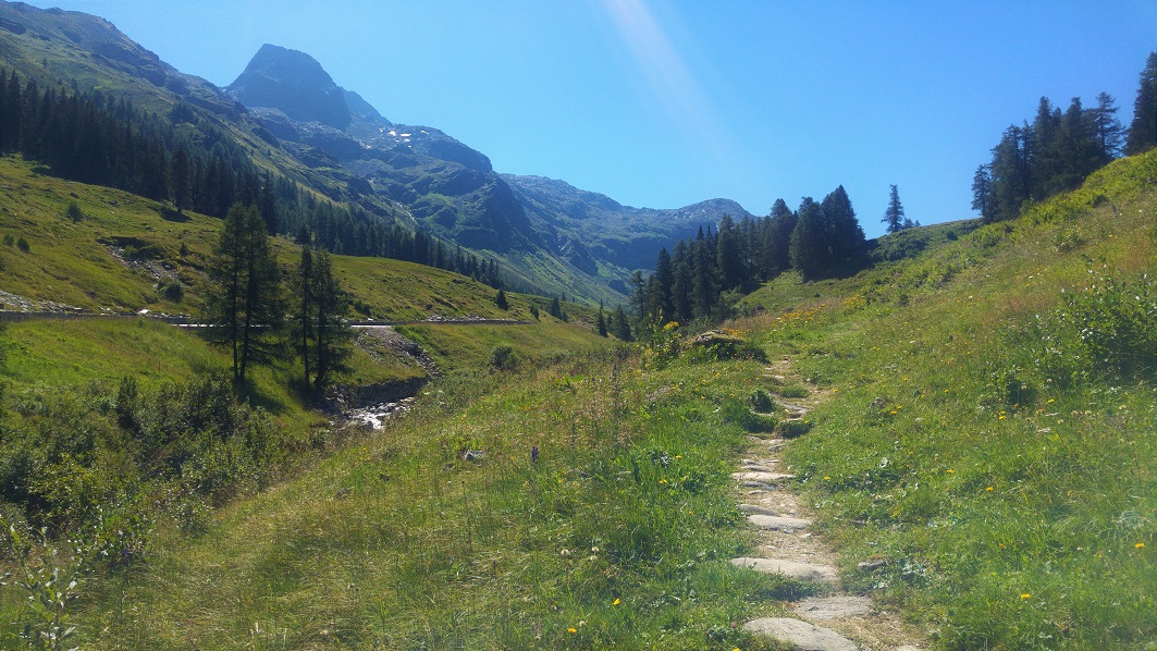 Seutu ei ollut aivan uutta, sillä polun alkuun vievässä Bavonan laaksossa asuu ystäviämme. Tien varrella on koru toisensa jälkeen ja kivirakennukset ihmeellistä. Lohkareiden onkalotkin on otettu käyttöön ja kallioinen lippa suojaa ylhäältä tippuvilta yllätyksiltä.