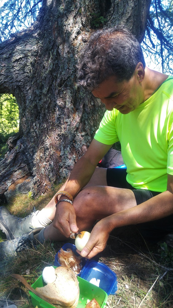 Foroglion Osteria La Froda oli vielä auki ja päätettiin syödä iltapalaa ennen monen tunnin ajoa kotiin. Ruokalista on perinteinen, vanhoja reseptejä ja lähiruokaa vaalitaan. Kaikki tarjoiltiin polentan kera tai perunamuussilla ja lihalla, kuten näillä seuduin varmaan on aina ollut. Valittavana oli tavallisten porsaan ja naudan lisäksi murmelia tai vuohea ja kasvissyöjälle lähinnä tattarinuudeleita juustolla ja vihanneksilla tai polentaa juustolla. Päätettin kokeilla ekstreemiä eli leikkeleitä perinteiseen tapaan, leipää ja salaattia. Kun edessä oli erilaisia kuivalihoja ja makkaroita reippaalla rasvamäärällä olin lannistua, mutta Aldo testasi myös laardia, valkoinen viipale sitä itseään. Olen syönyt pitkään lähes kasvispohjaista ruokaa ja tämä oli kyllä tuhti satsi, eikä tule toistumaan enää ikinä. Tulipa ruokailtua, kuten calnegialaiset ikään, perinteitä ja vanhoja valmistustapoja vaalien.