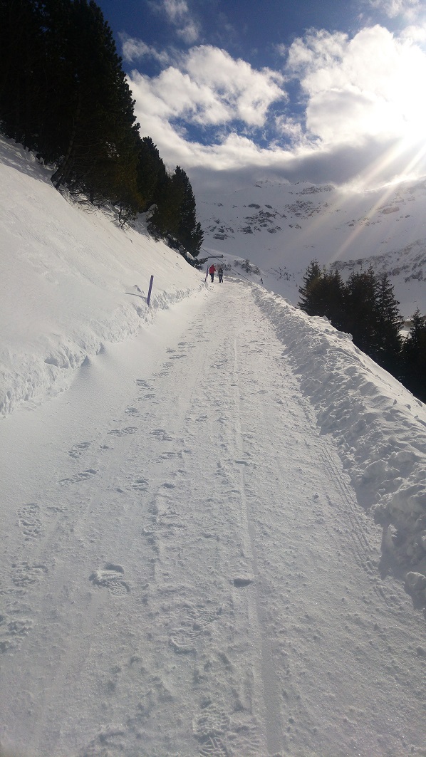 En resumen: Este camino desde Mathon no es nuevo, pero muy querido y siempre un gusto! Y apesar de toda la nieve, nos topámos con la primera mariposa y una flor de la primavera.