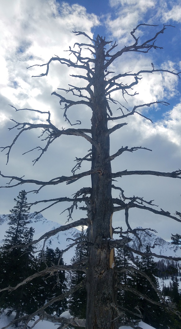 Edellisellä kerralla jatkoimme ensimmäisestä etapista Prodalpista rengasreittiä kohti Chrüzin frisbeemäistä röstiateriaa. Nyt seurattiin lanattua tietä suoraan aina vain ylemmäs, jyrkänteen reunamaa seuraillen Panüöliin. Vesipulloja oli repussa kaksi ja tarpeeseen. Koko reitti oli vain yhdeksan kilometriä, mikä tarkoitti aikalailla jatkuvaa kallistumaa. Viimeisestä retkestä suussa oli yhä rasvan maku, joten mukana oli eväitä sen verran, että taatusti jaksettiin ylös asti ilman kuppilan antimia. Iltapäiväauringossa kuusien oksilta tippui vettä ja muutaman alla oli vähän kevättä. Lämmin kohta kutsui istahtamaan tauolle. Mikä on eväitä syödessä, kun aurinko paahtaa, jalat on lumessa ja keuhkot hapetettu.