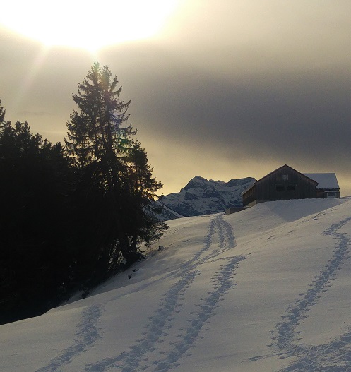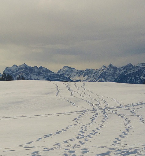 Meillä päin, Zürichin vieressä ja kaupungin lähistöllä, mäkisessä maastossa, se nähdään vaivana. Autot liukuu kitkarenkaissakin kuin mahakelkat, teitä suolataan reilulla kädellä ja suola sotkee vaatteet, kengät, lattiat. Katujen putsaaminen synnyttää lisäkuluja. Huonona budjettivuonna kaduille ilmestyvä kyltti “Ei talvikunnossapitoa kunnassa!” on jalankulkijan painajainen. Mutta vuorilla on toinen juttu, sinne sen pitäisi sataa, eikä mitään pientä huitukkaa, vaan metrimitalla, jotta päästään laskettelemaan, lumikenkäilemään, vaeltamaan.